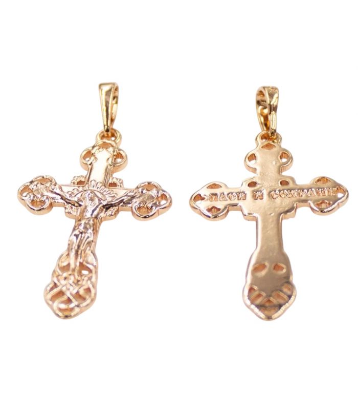 Хрестик із зображенням Господа та сина Божого, позолота (1,7/2,7см)