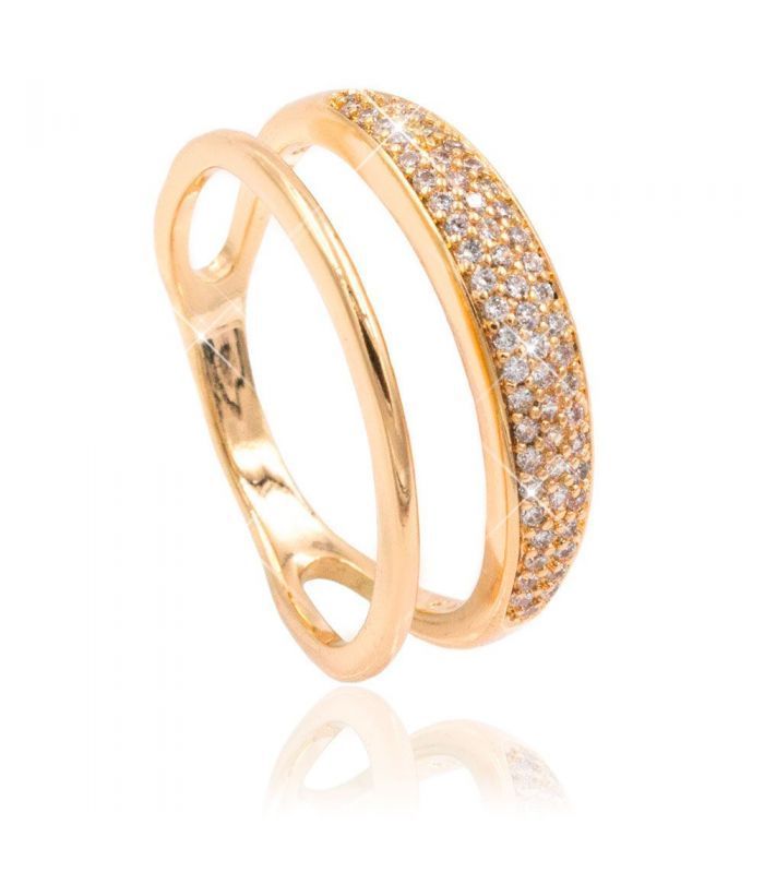 Кільце позолота Подвійна хвиля, круглі/квадратні камені