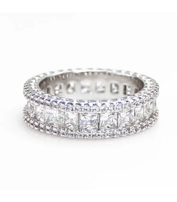 Кільце родіум Х, 2 вигину каміння на кільці-сітці