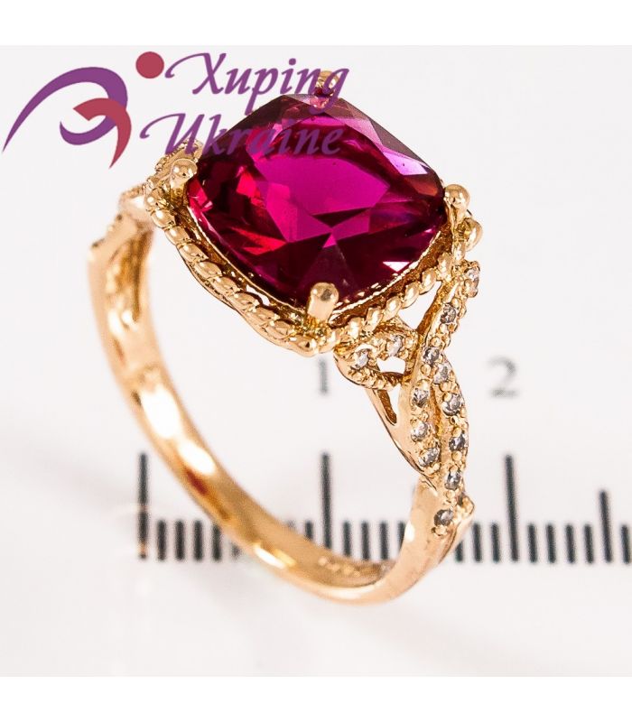 Кільце Xuping позолота Тонкий вигин 5 каменів/серце (двостороннє)