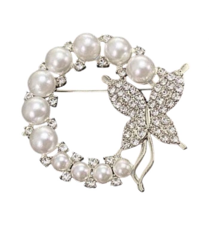 Брошь "Веночек с бабочкой" лимонная позолота