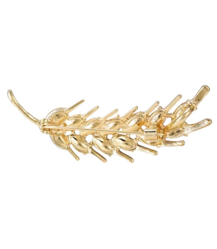 Брошь "Колосок с жемчужиной" лимонная позолота