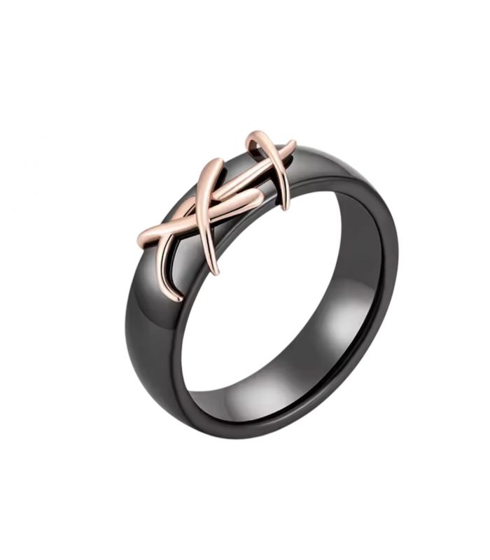 Кольцо Xuping двойное чёрная керамика с цирконами