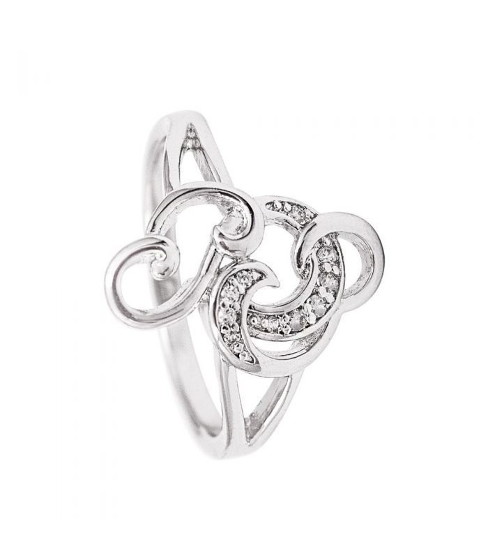 Кольцо родий Греческий орнамент между линий мелких камней (0,7 )