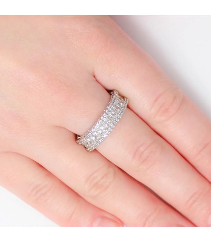 Кольцо родий Ряд прямоугольных камней,мелкие камни волнами...