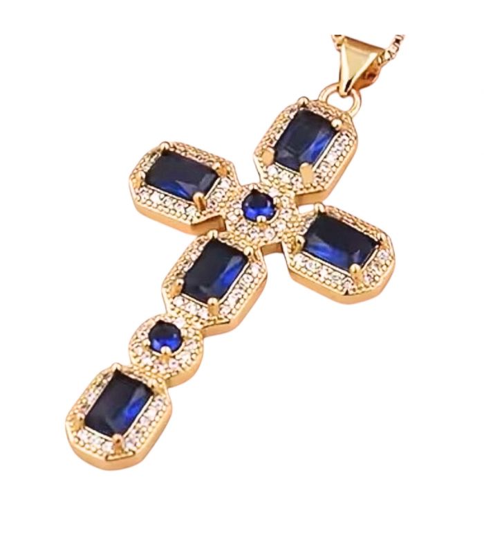 Кулон Крестик с синими цирконами лимонная позолота (медицинское...