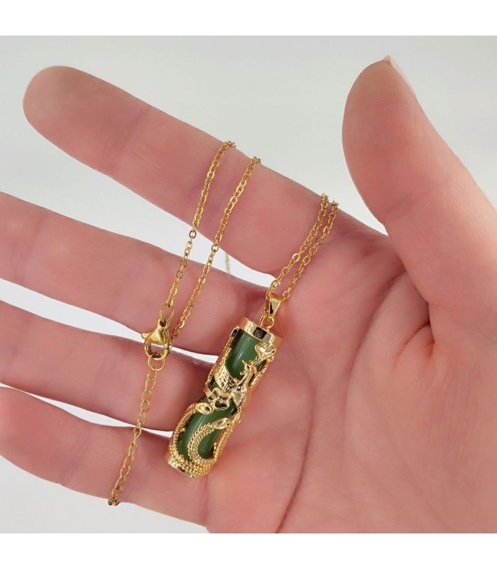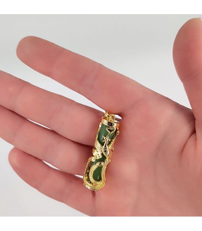 Подвеска на цепочке "Феникс" с нефритом сталь 14К