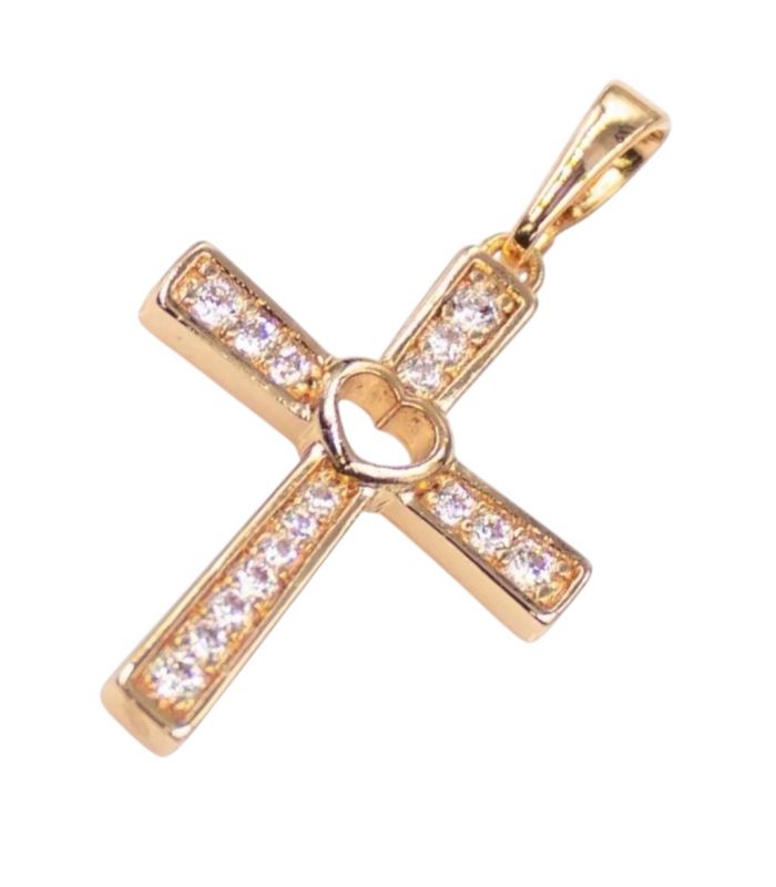 Подвеска Xuping Крестик с камешками, лимонная позолота