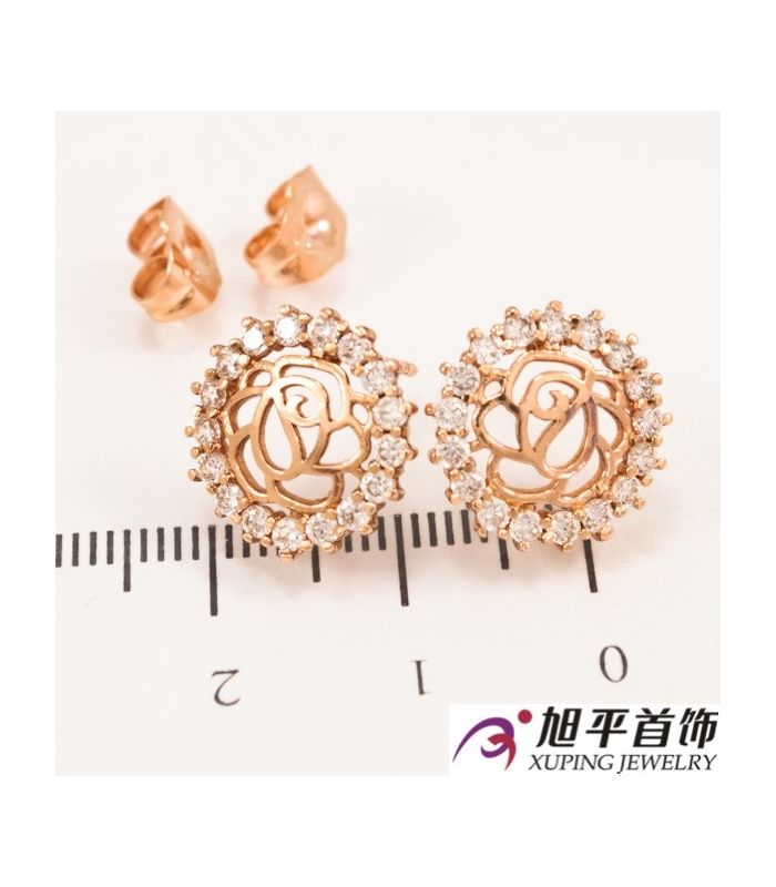 Серьги-гвоздики позолота контур розы в оправе мелких камней (плоск. круг)
