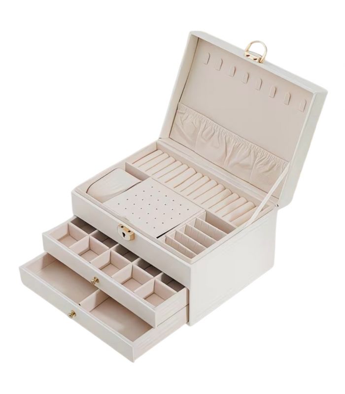 Шкатулка-органайзер кожаная, на замочке (белая)