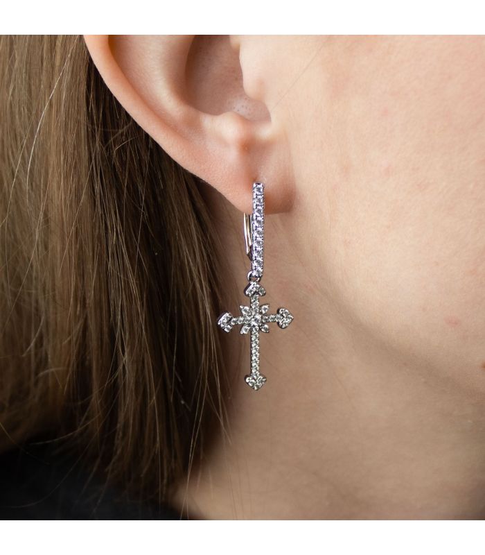Сережки Xuping "Хрестики в камінні" родій (медичне золото)