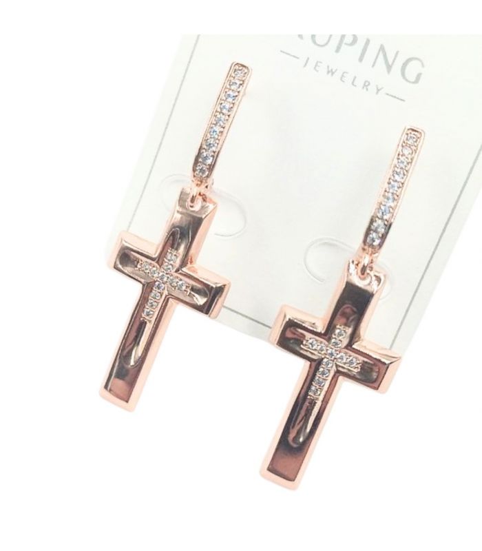 Сережки-підвіски Хрестики з цирконами, лимонна позолота