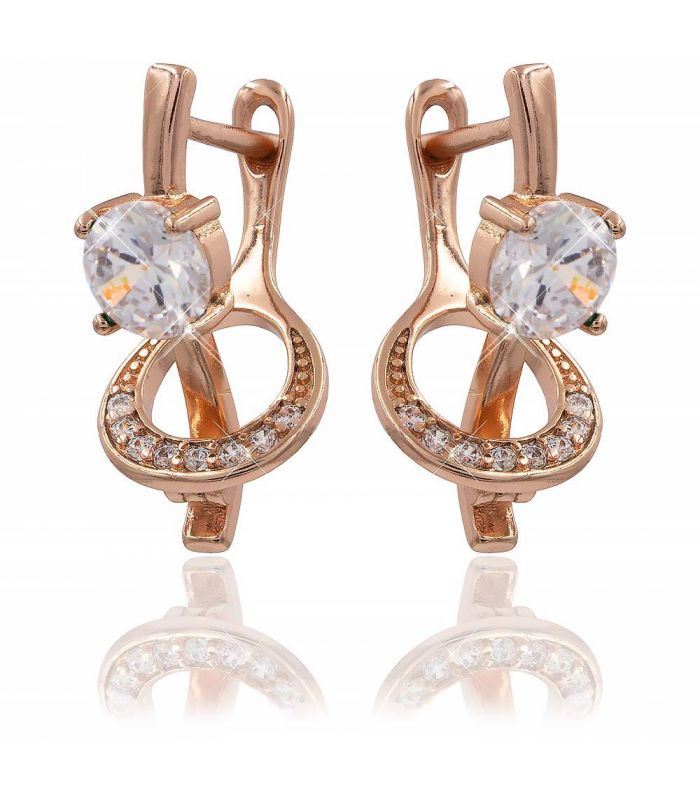 Сережки позолота «Лебідь» 3 вузькі камені