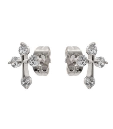 Сережки-гвоздики позолота "Хрестик - 4 камені по краях"